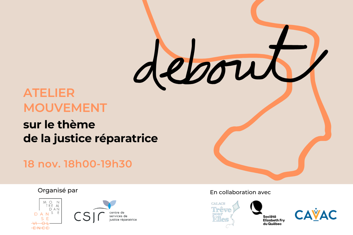 Inspiré par les mots de Geneviève Rioux, porte-parole du Centre de services de justice réparatrice, le thème « Debout » ouvre un espace de réflexion et de transformation : comment, après une épreuve, reprendre pouvoir sur son corps et son histoire ? Comment se remettre en mouvement, doucement, à son rythme?